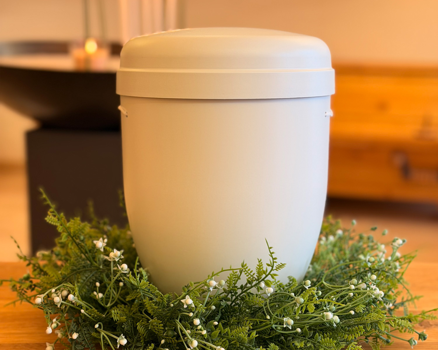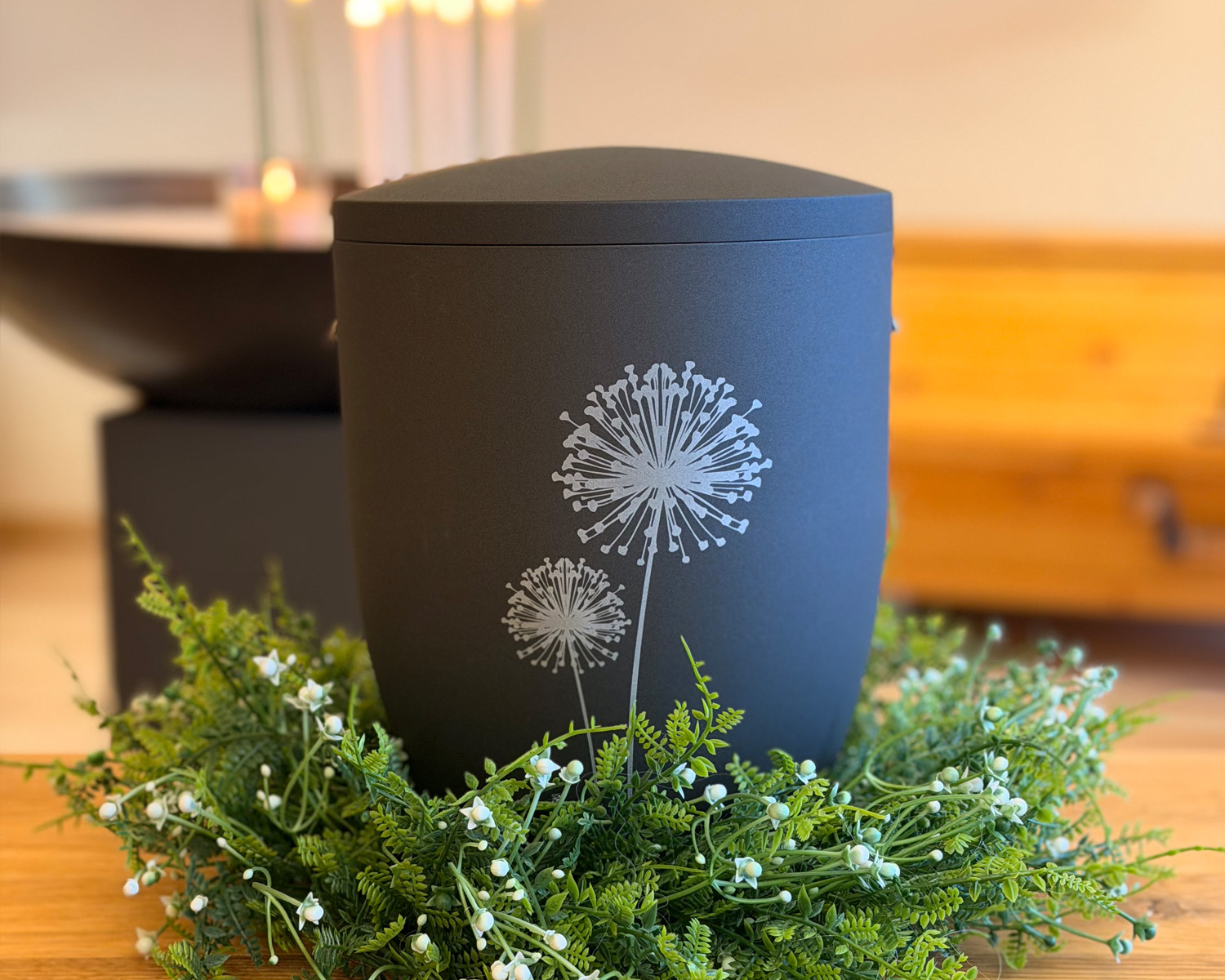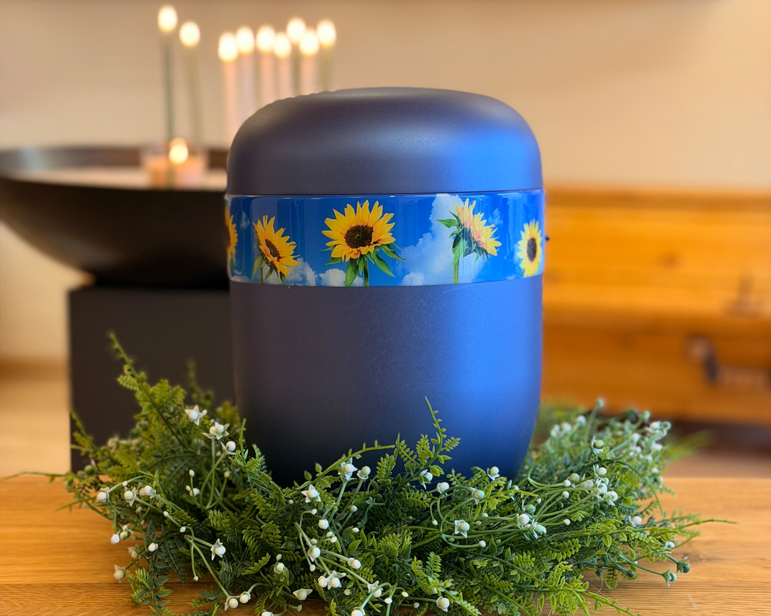 - Blumenschmuck kann frei gestaltet werden und wird bei der Beisetzung dem Meer übergeben.